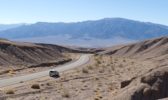 Unpeopled space of a certain scale has an almost narcotic effect on me. This effect is in direct proportion to the amount of that space I can make myself aware of, and there is no better place to experience this than Death Valley. It starts with the long drive over hundreds of miles of similar landscape required just to reach the place. The topography in the Park affords excellent long views from various heights, and the close presence of 11000 ft mountains adds a vertical aspect to the vastness. The vastness is temporal as well, as the utter lack of vegetation and resultant exposed geology transform our measurement of time here from the seasonal or yearly to the millennial. ◊