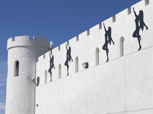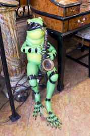 A sad clown. A surrealist gunfighter. A saxophone-playing frog. Queens, Kings, Knights, and Horsemen. Flying Angels. Leaping dolphins. 2 majestic eagles pitched in an epic struggle. A smiling shoeshine boy. Galloping horses. A gilded piano that would make Liberace proud. Gigantic, put-the-kid-on-top sized metal turtles. Gobs of brightly colored Miro-inspired glasswork.